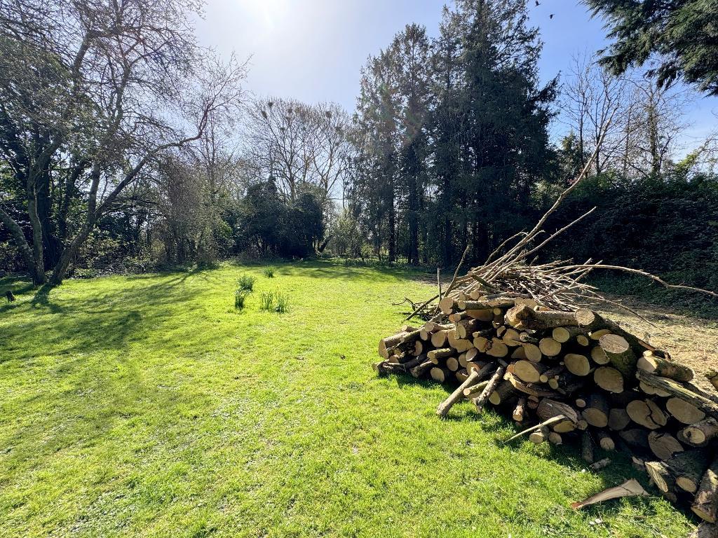 The secluded gardens extend around to the rear of the property, with a paved terrace featuring a decorative brick arch that connects the house to the outbuildings. Immediately adjacent to the house is a paved patio, followed by a more formal lawned area with flower and shrub borders that extends into an orchard with soft fruits, fruit trees, established hedge boundaries, and a large lawn.