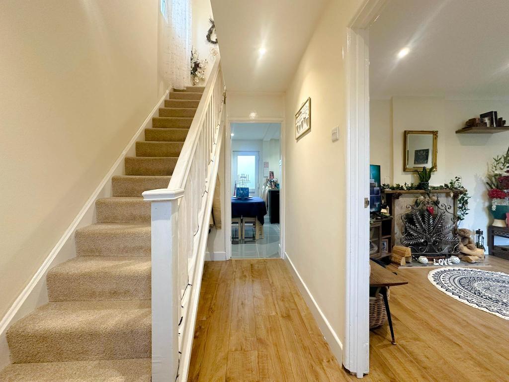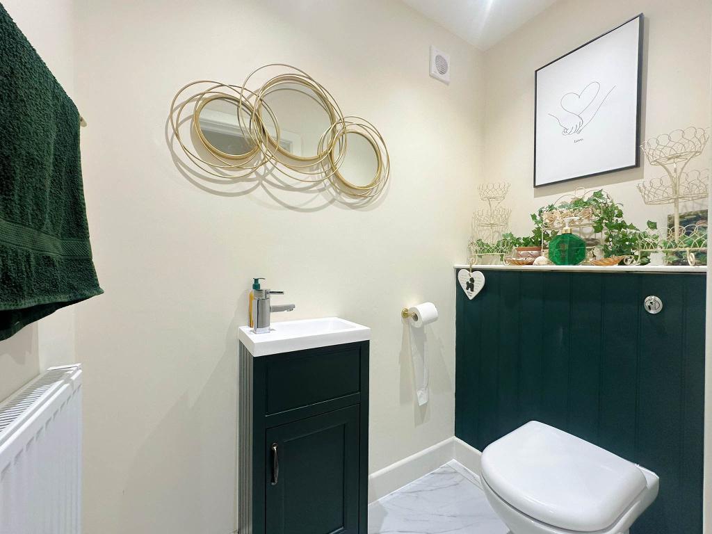On the ground floor, a welcoming hallway leads to a cosy sitting room, ideal for relaxing or entertaining. The open-plan kitchen/dining area forms the heart of the home, providing a sociable space for family meals and gatherings. There is also a useful utility area and a convenient downstairs cloakroom, adding practical functionality to everyday living.