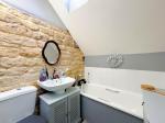 Upon entering, you are welcomed into a stunning farmhouse-style kitchen/dining room, complete with solid oak worktops, ample storage, and striking stone tiled flooring, creating a warm and inviting heart to the home. A useful utility room and downstairs WC, an uncommon luxury for a property of this age, add to the practicality of the space.