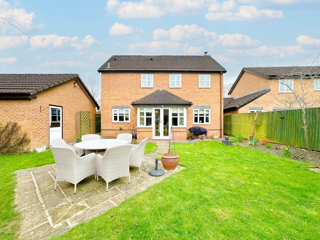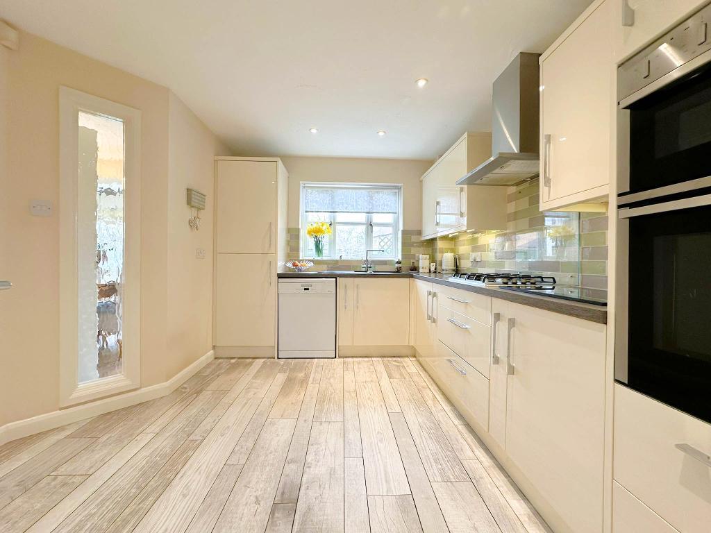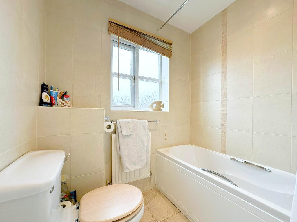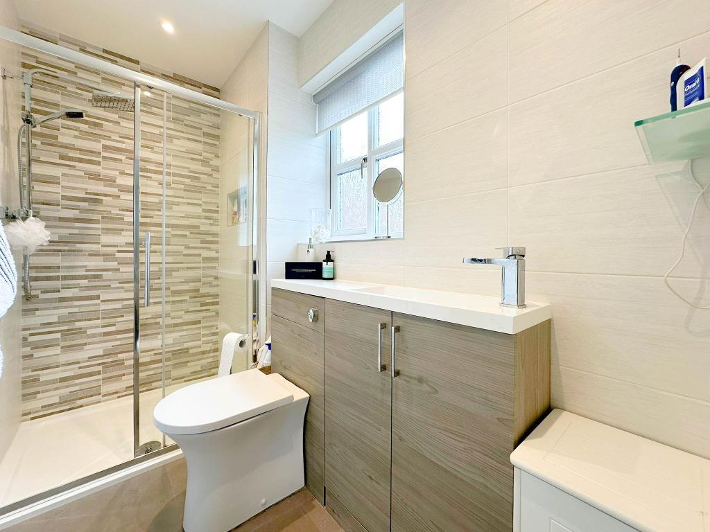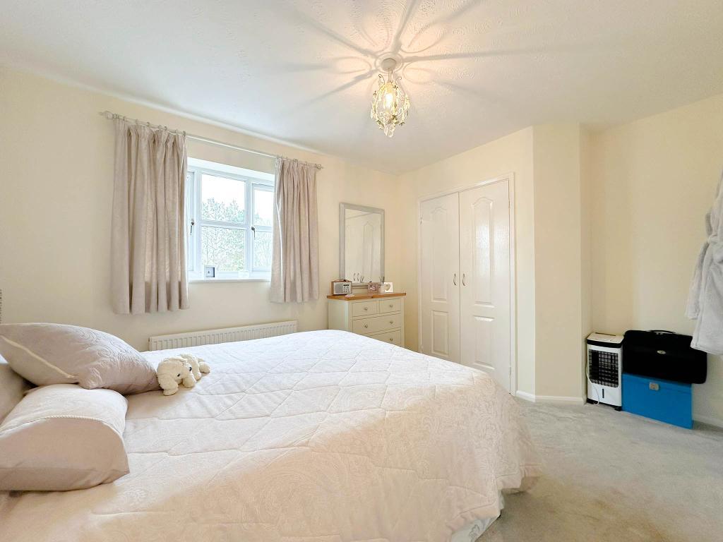 Upstairs, the property offers four well-proportioned bedrooms, all presented in good order. The principal bedroom benefits from fitted storage and a private en suite shower room, while the remaining bedrooms are served by a family bathroom comprising a modern suite.
