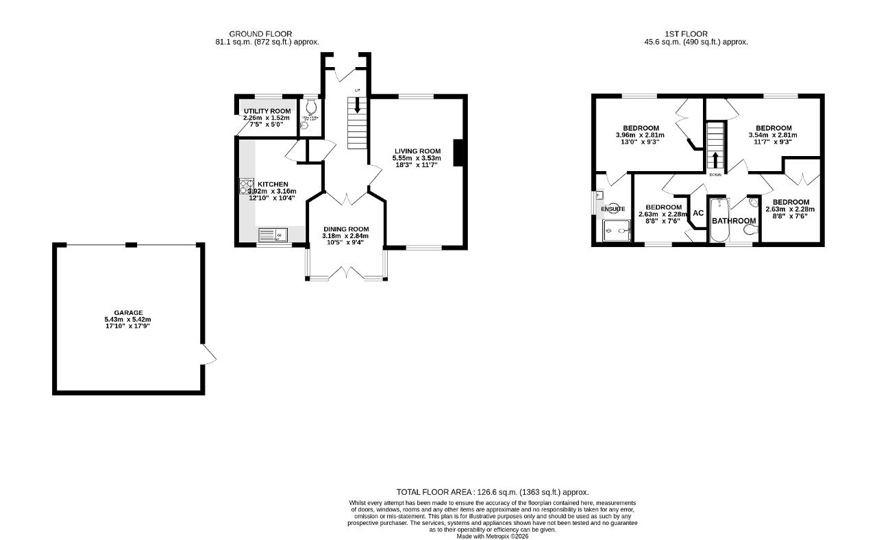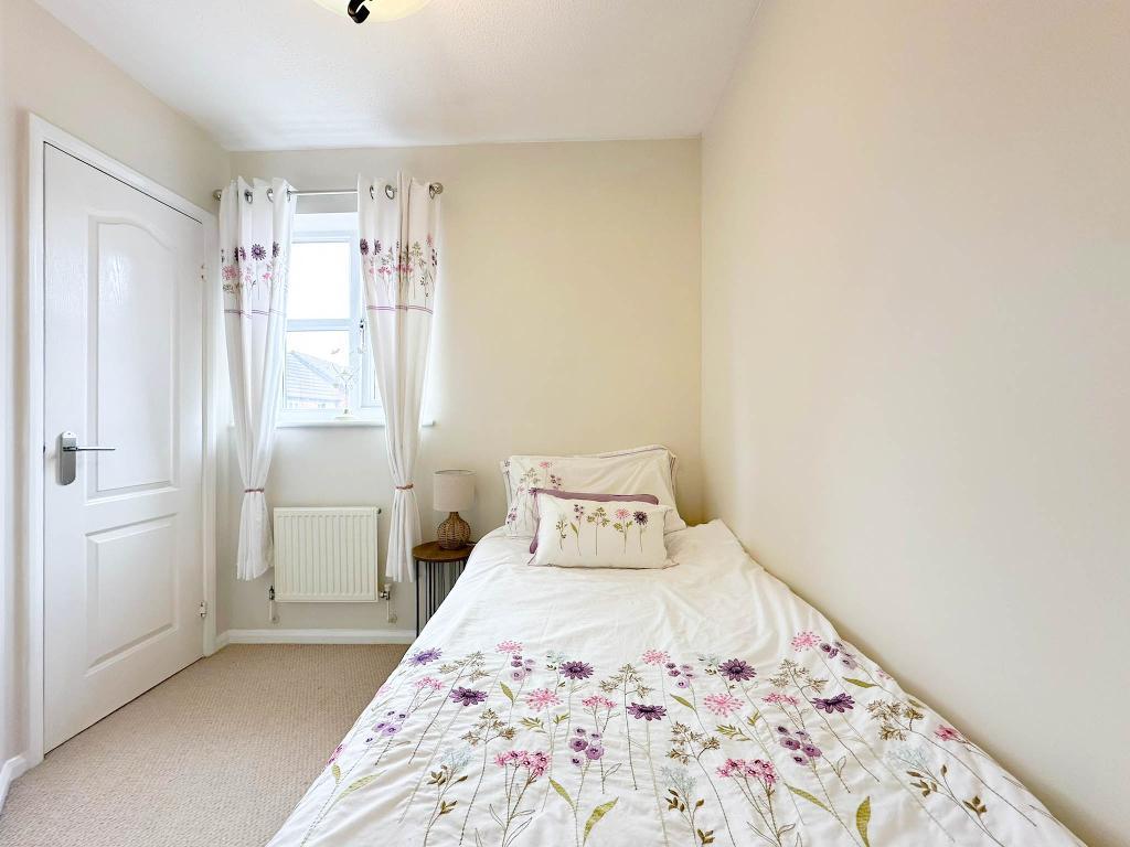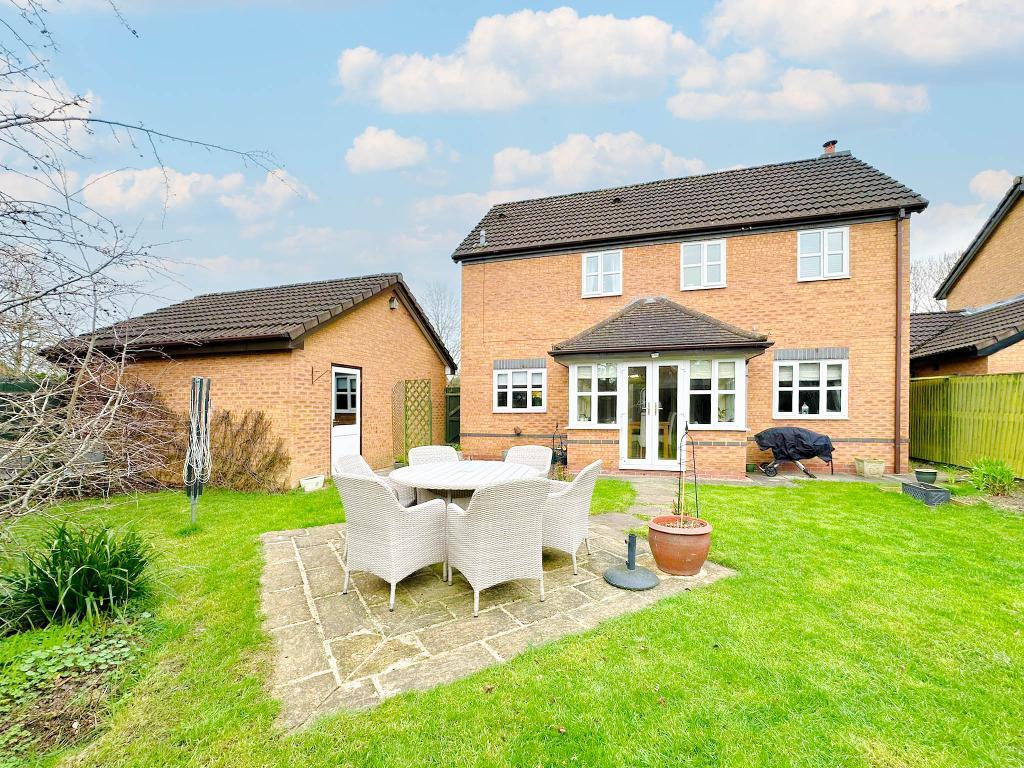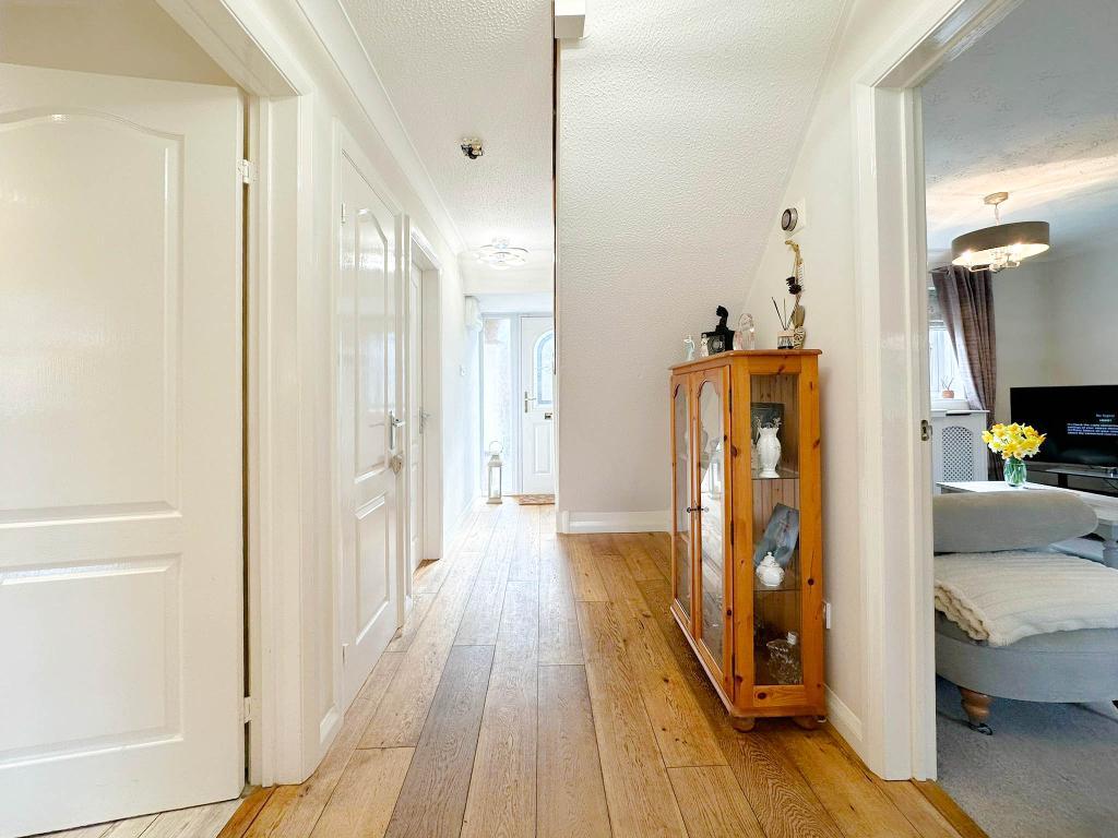 Upstairs, the property offers four well-proportioned bedrooms, all presented in good order. The principal bedroom benefits from fitted storage and a private en suite shower room, while the remaining bedrooms are served by a family bathroom comprising a modern suite.