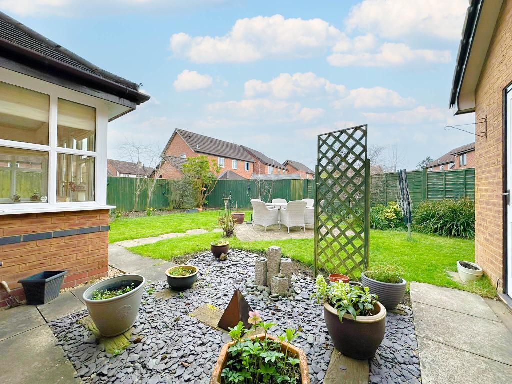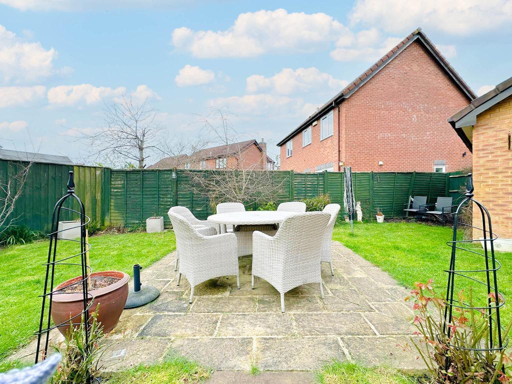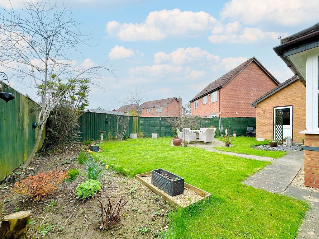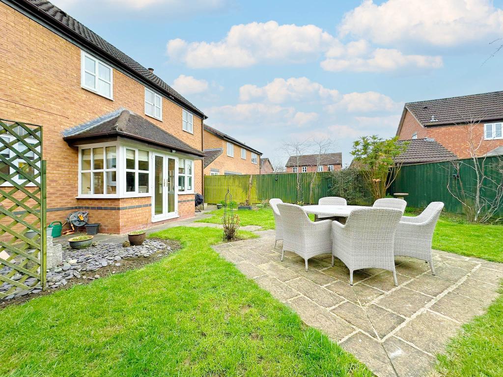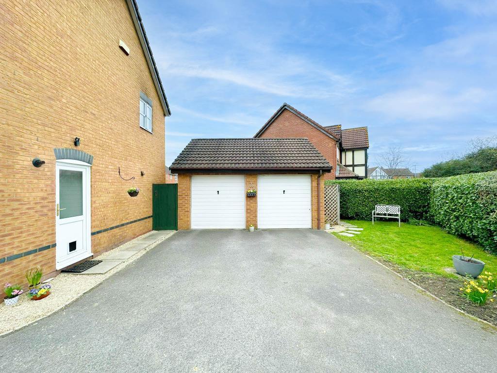Externally, the rear garden is fully enclosed and mainly laid to lawn with a patio area, ideal for outdoor dining and entertaining during the warmer months. The garden offers a good degree of privacy and is well suited for children and pets. To the front, the property benefits from a driveway providing ample off-road parking, leading to a double garage with up-and-over doors.