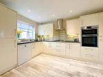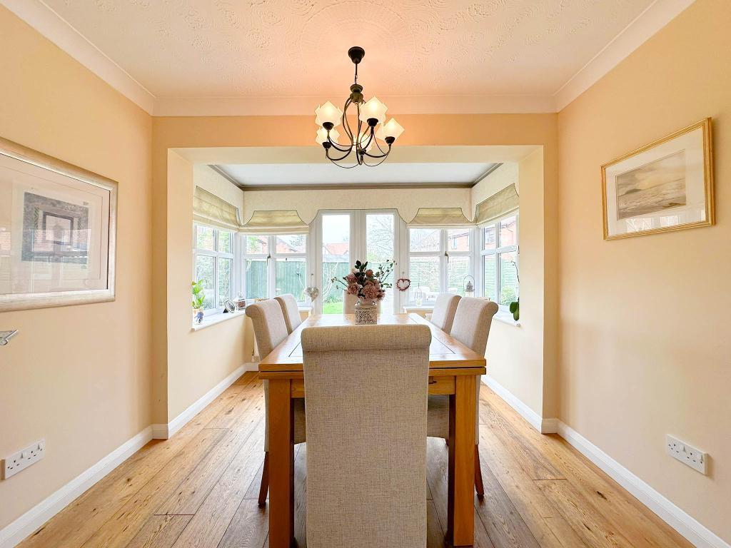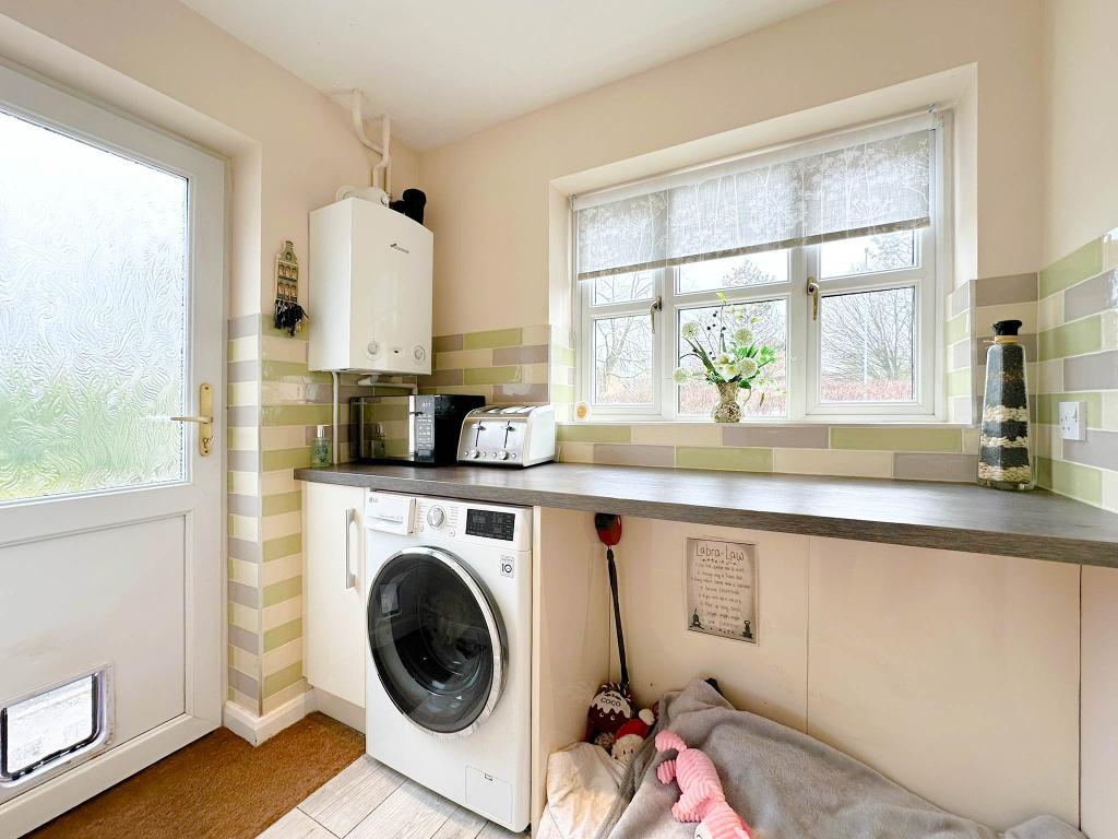 The ground floor accommodation is accessed via a welcoming entrance hall, leading through to a generously sized sitting room which enjoys a bright dual aspect, creating a warm and inviting living space. The separate dining room provides an excellent area for formal entertaining or family meals, with potential to adapt as a playroom or study if desired. The kitchen is fitted with a comprehensive range of wall and base units, offering ample work surface and storage, and is complemented by a separate utility room providing additional appliance space and access to the rear garden.