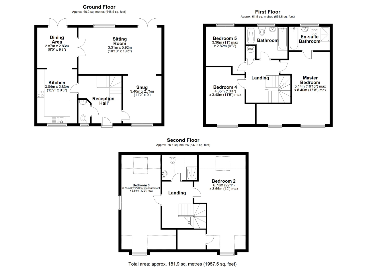 On the ground floor there is a light and spacious reception hall with a cloak room, stylish kitchen / dining area with French doors leading out to the rear patio, double doors leading to the 19ft sitting room also with French doors giving access to the delightful sunny rear garden and a snug to relax in after a long day. Upstairs there is a desirable master bedroom with a dressing area with parkland views and an en-suite bathroom with separate shower, two more double bedrooms and a family bathroom also with a separate shower. On the top floor there are two more double bedrooms with their very own shower room between them.