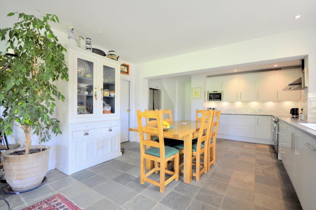 There is a desirable kitchen / dining room proving to be the hub of this family home which was updated in 2020, providing plenty of integrated appliances, granite worktops, a Range cooker and a generous amount of storage. French doors open out to a private extended Indian sandstone patio which is perfect for al-fresco dining and entertaining guests. There is also another sitting area with a wood burner stove and a separate utility room completing the ground floor.