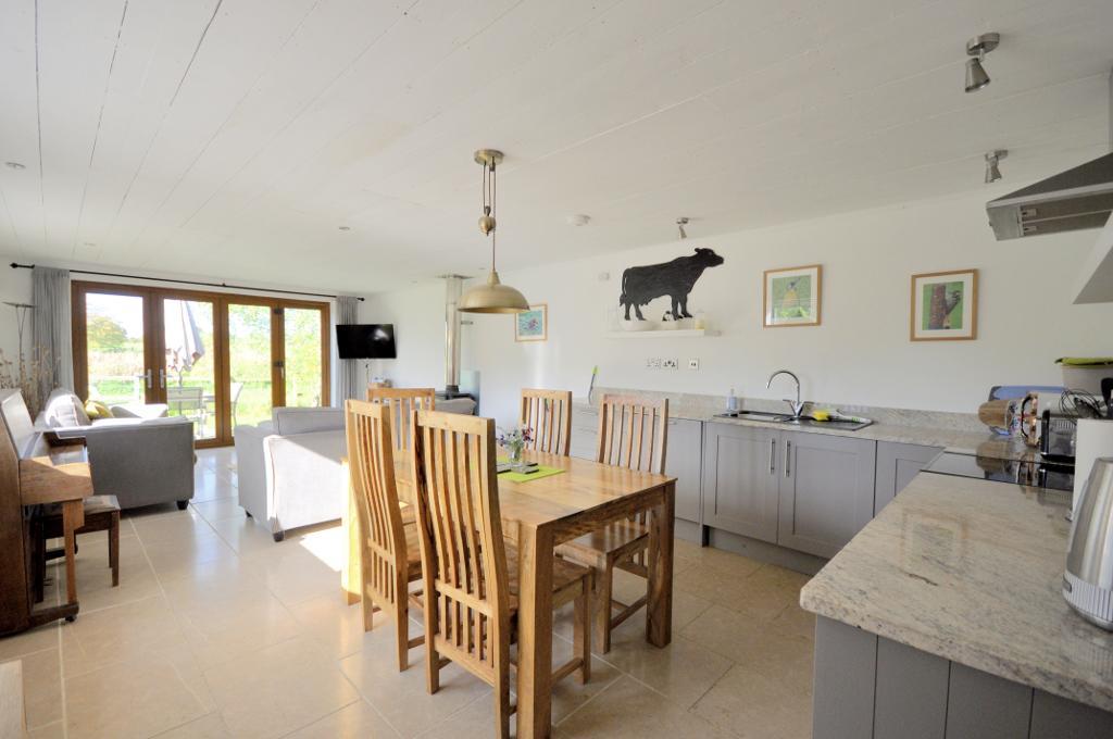 The two bedroom holiday cottage (which was the former milking parlour) is also accessed from the driveway. With two double bedrooms with their very own contemporary style en-suite shower rooms, a beautiful kitchen / dining / living space with a wood burner and French doors leading out to a private patio and fenced off garden overlooking the grounds.