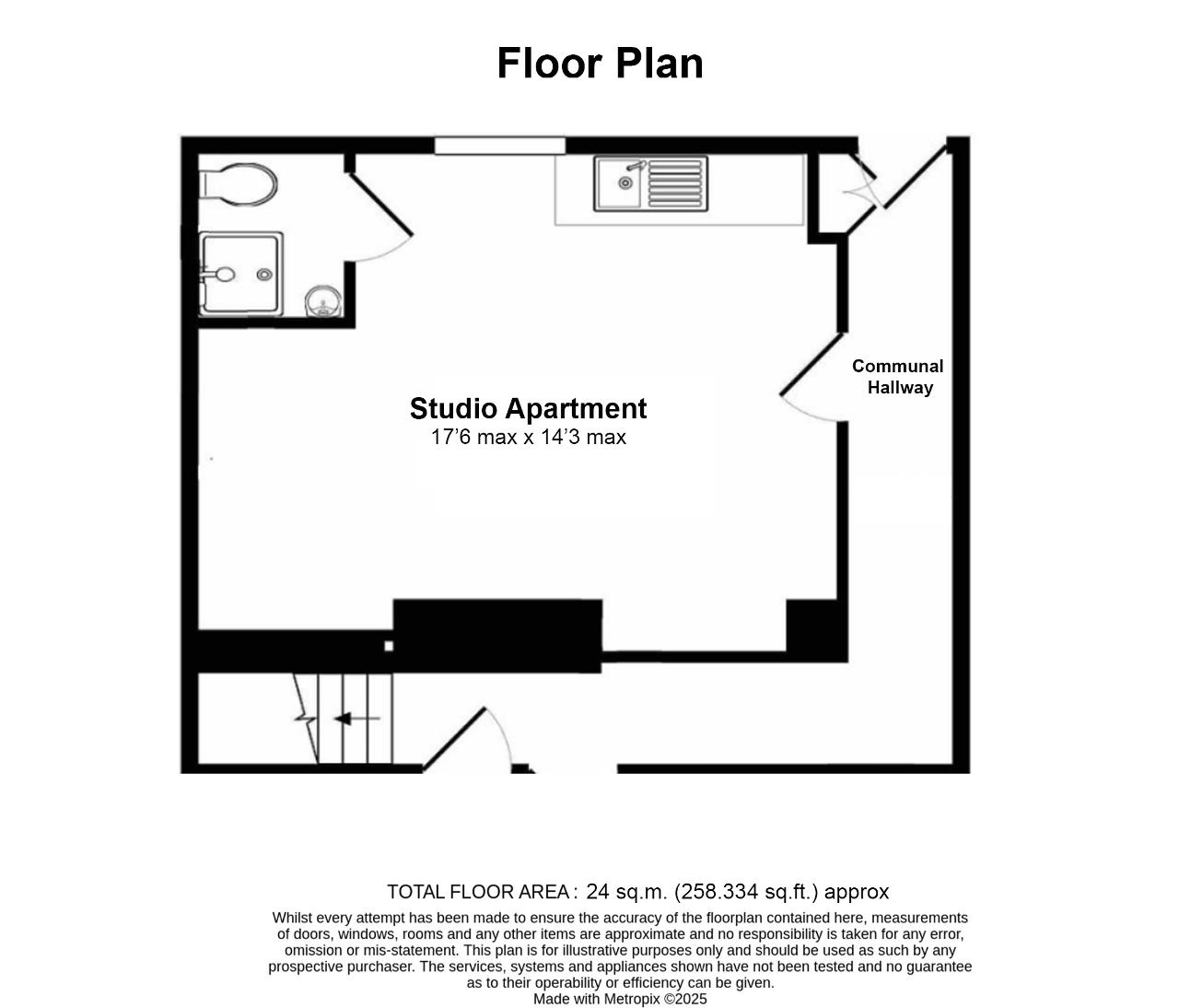 The accommodation comprises a welcoming communal entrance hall with a handy storage cupboard, an open-plan living/kitchen/bedroom space designed for modern living, and a separate, contemporary shower room.