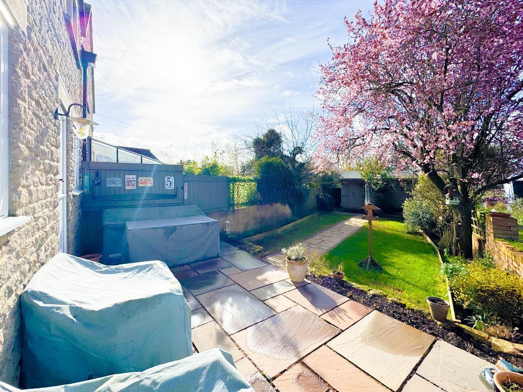 Externally, the rear garden is a true sanctuary, thoughtfully landscaped and beautifully planted with cherry trees and a variety of established greenery. A well-laid stone patio provides the perfect setting for outdoor dining, while a pathway leads to a generous garden shed at the far end.
