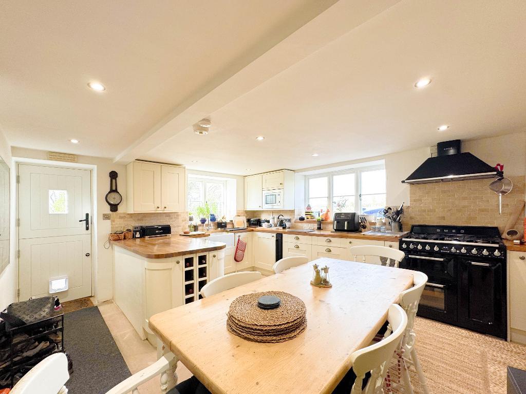 Upon entering, you are welcomed into a stunning farmhouse-style kitchen/dining room, complete with solid oak worktops, ample storage, and striking stone tiled flooring, creating a warm and inviting heart to the home. A useful utility room and downstairs WC, an uncommon luxury for a property of this age, add to the practicality of the space.