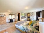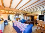 A charming stone mullion window draws in natural light as you move through to the cosy yet spacious sitting room. This room is brimming with character, showcasing exposed wooden beams, beautifully crafted bespoke mullion windows, and an impressive inglenook fireplace steeped in history. A particularly unique feature is the staircase, which elegantly intertwines with the fireplace, an eye-catching talking point sure to impress guests.